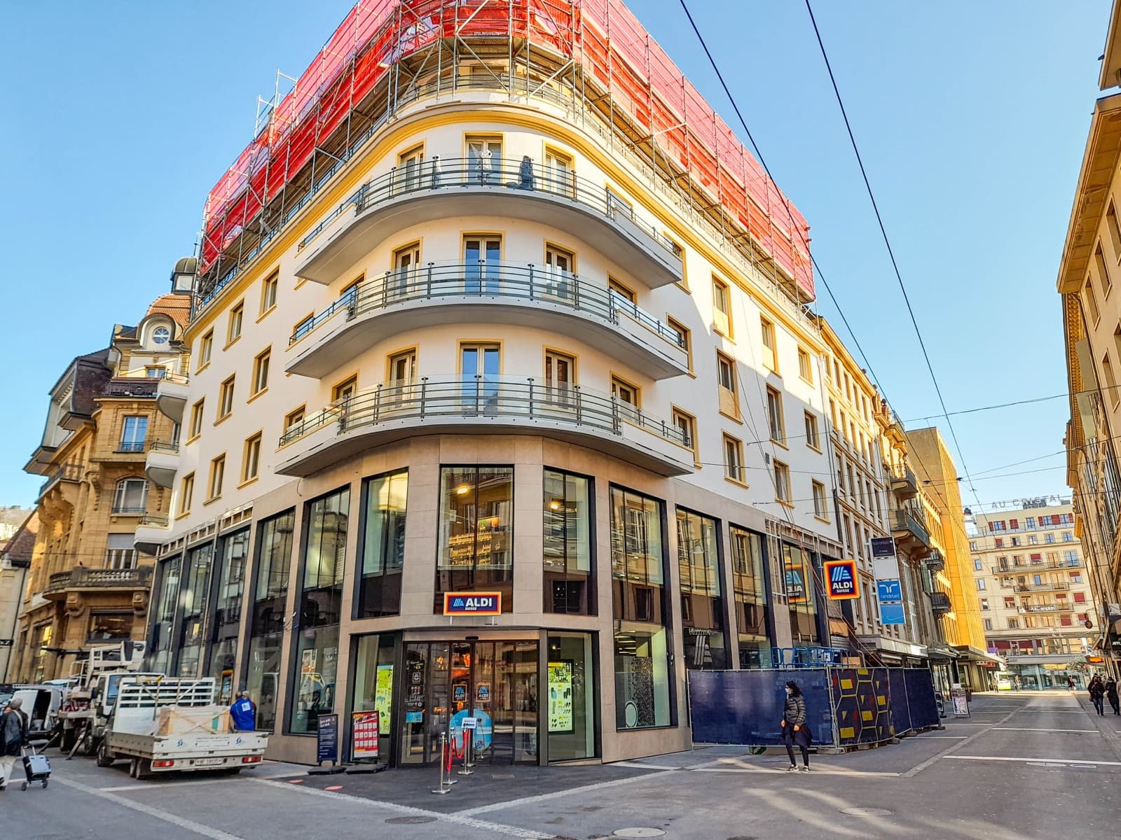 Aménagement d’un nouveau point de vente Aldi dans le bâtiment existant à la Rue St-Honoré à Neuchâtel. Production de chaleur et de froid (climatique et commercial) avec groupe compact au CO2. Distribution de chaleur et de froid par des cassettes plafonnières. Ventilation double-flux et régulation pour les installations CVC.